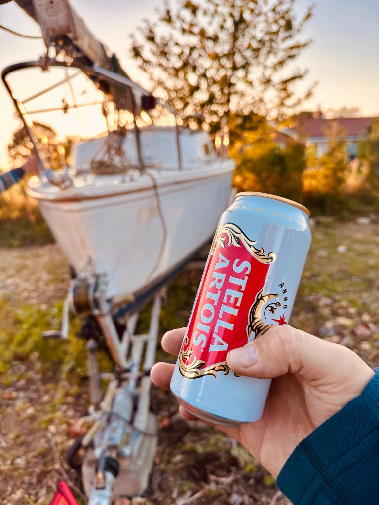 At last, we got her home safely. We toasted her arrival with the only alcohol to hand (a can of Stella!), kindly provided by the compounds neighbour Ian. After a quick look inside the cabin (surprisingly promising), I called it a day—it had been a long one.